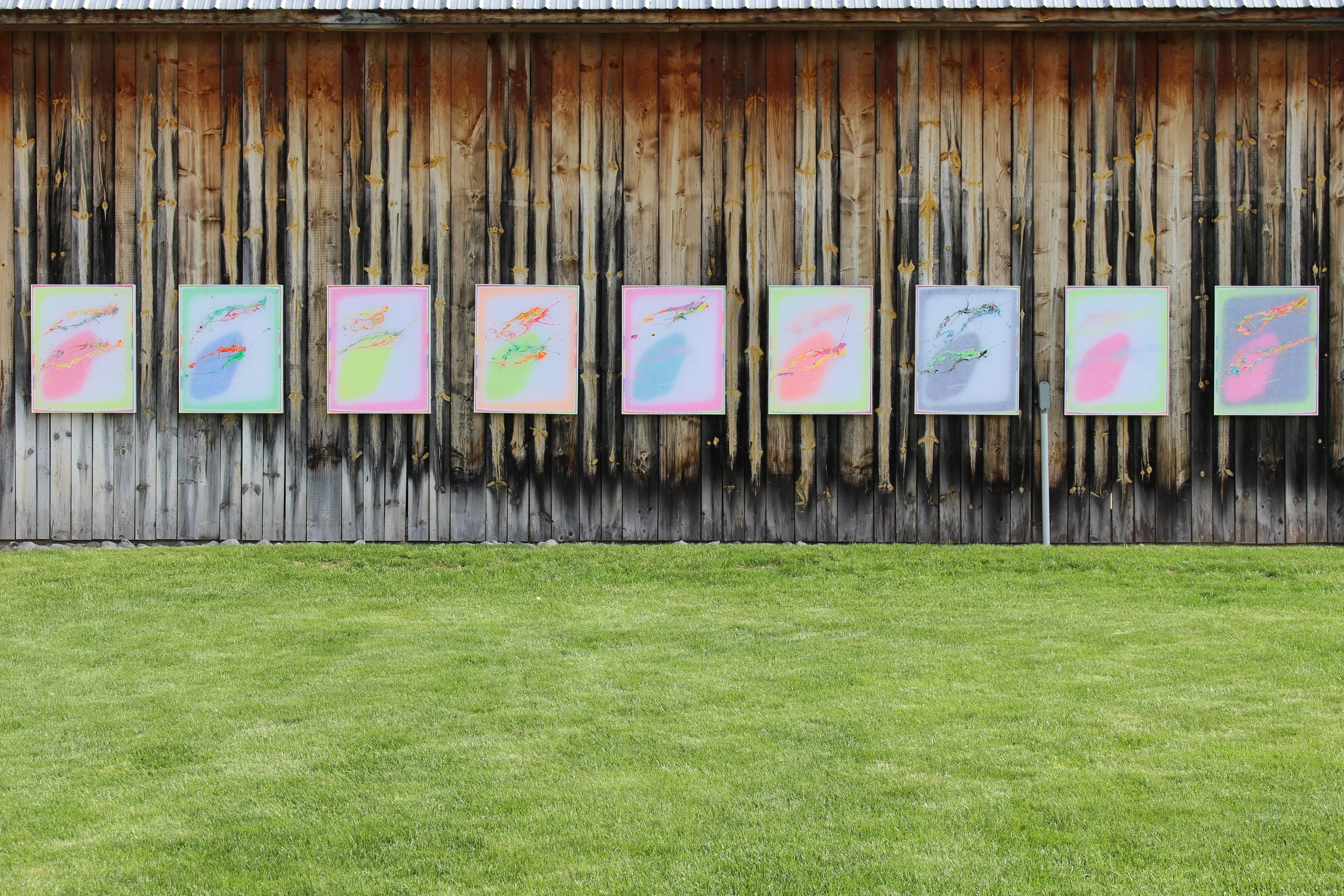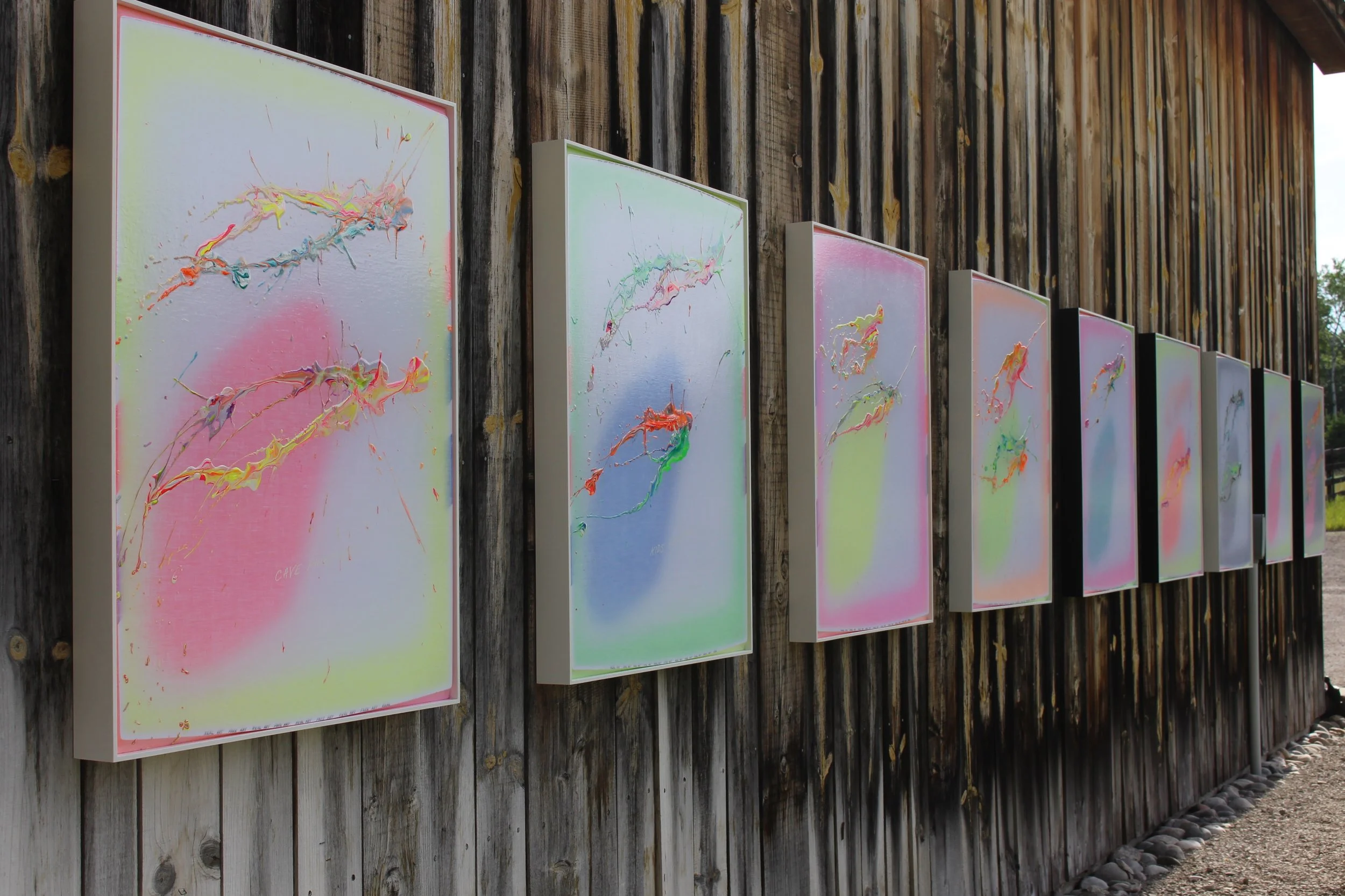 Acrylic on linen mounted over a unique handmade wood stretcher, framed.