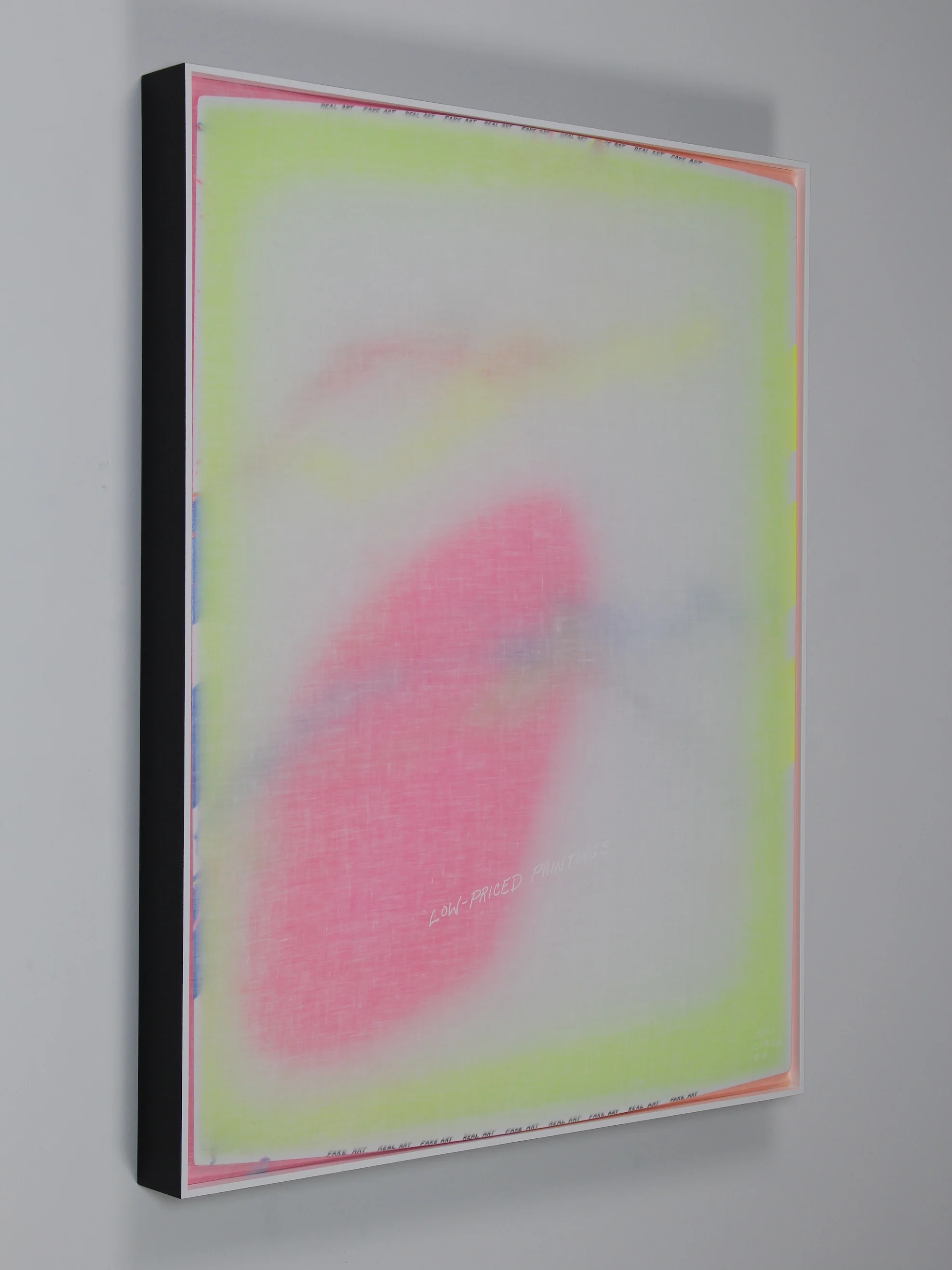 Acrylic on linen mounted over a unique handmade wood stretcher, framed.