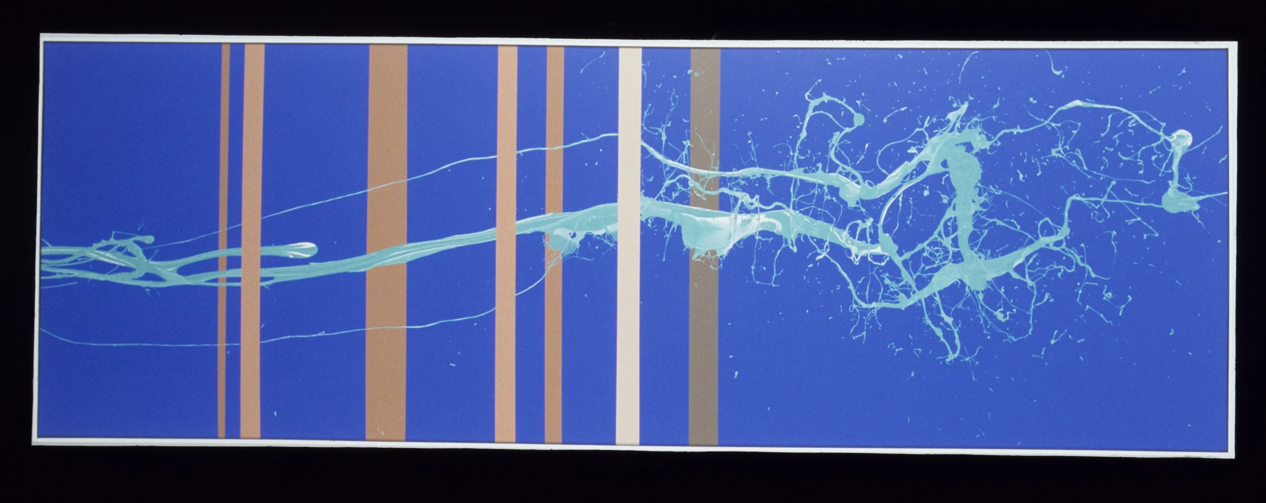 The Early San Francisco paintings mark a shift in my practice. The vertical color fields remain from earlier work, but now they serve as anchors for something more symbolic. Across each surface, a single gesture breaks through the structure—sometimes calm, sometimes abrupt—like a brief signal moving across space. This is also the period when the titles begin pairing a number with a short phrase, a format I carried into many future series. Looking back, these paintings sit at the point where structure and spontaneity begin to work together, opening a clearer path toward the ideas that shaped the years ahead.