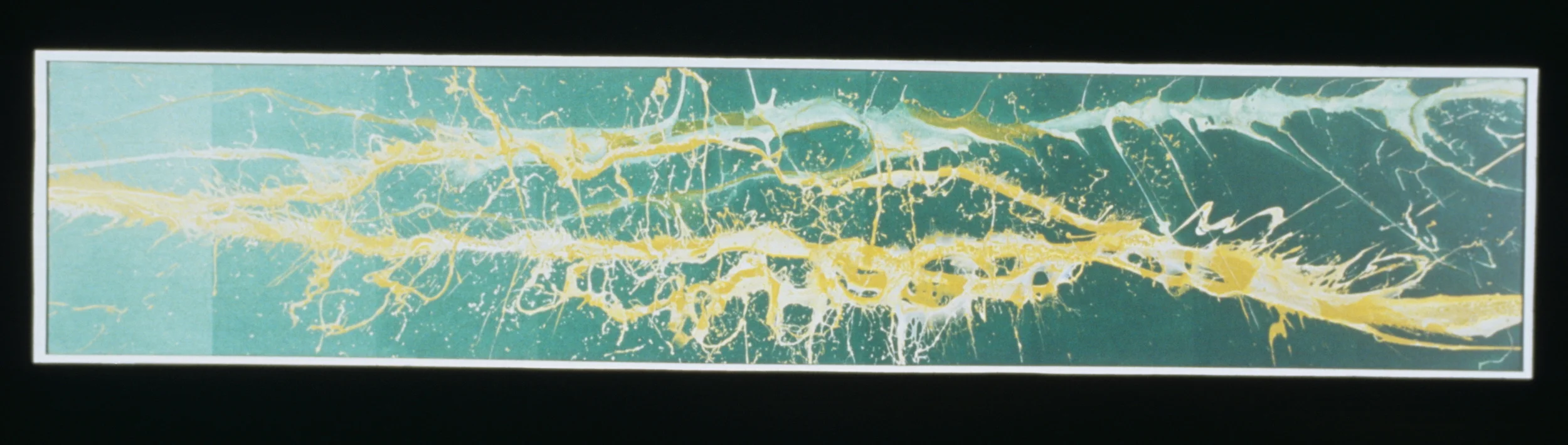 • The Early San Francisco paintings mark a shift in my practice. The vertical color fields remain from earlier work, but now they serve as anchors for something more symbolic. Across each surface, a single gesture breaks through the structure—sometimes calm, sometimes abrupt—like a brief signal moving across space. This is also the period when the titles begin pairing a number with a short phrase, a format I carried into many future series. Looking back, these paintings sit at the point where structure and spontaneity begin to work together, opening a clearer path toward the ideas that shaped the years ahead.