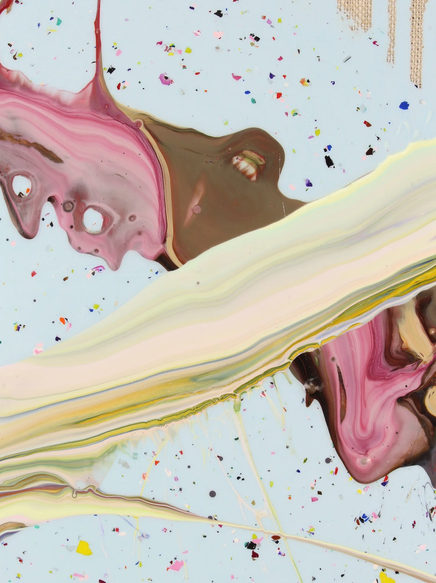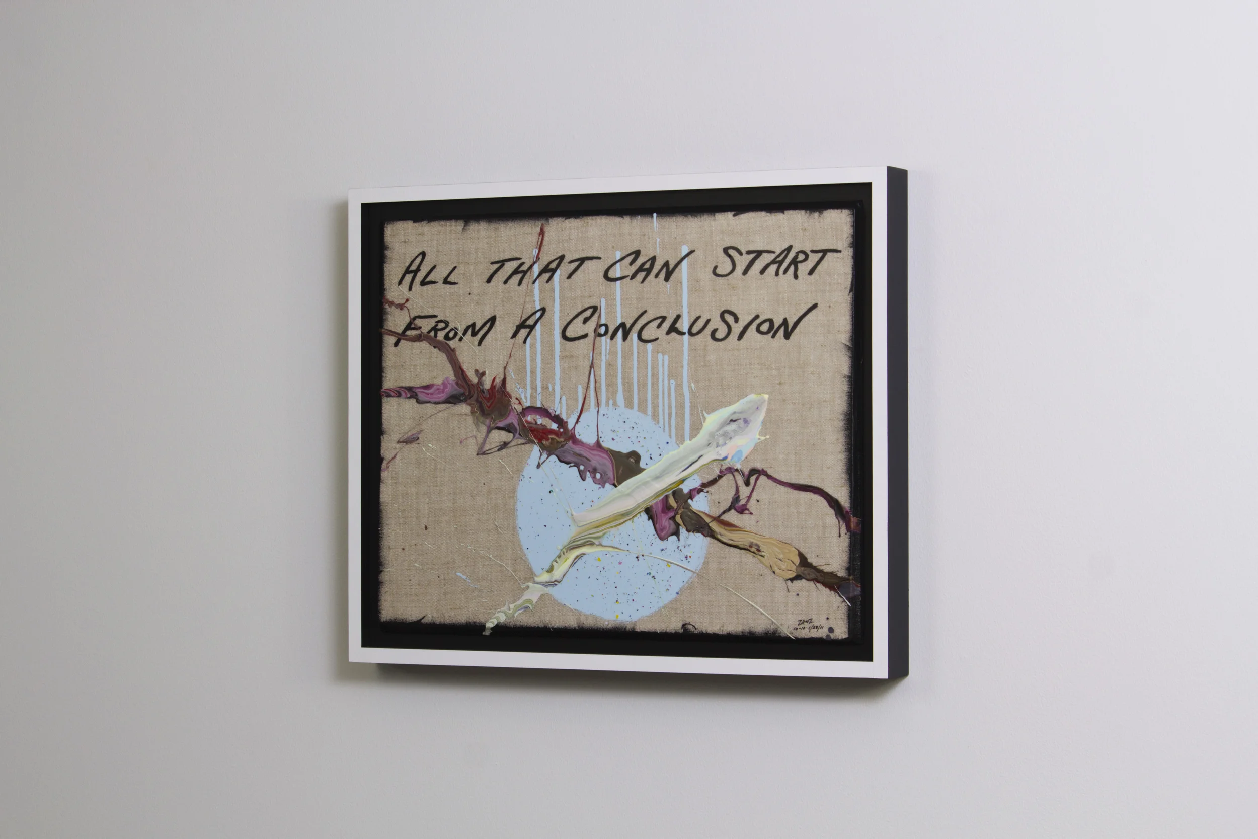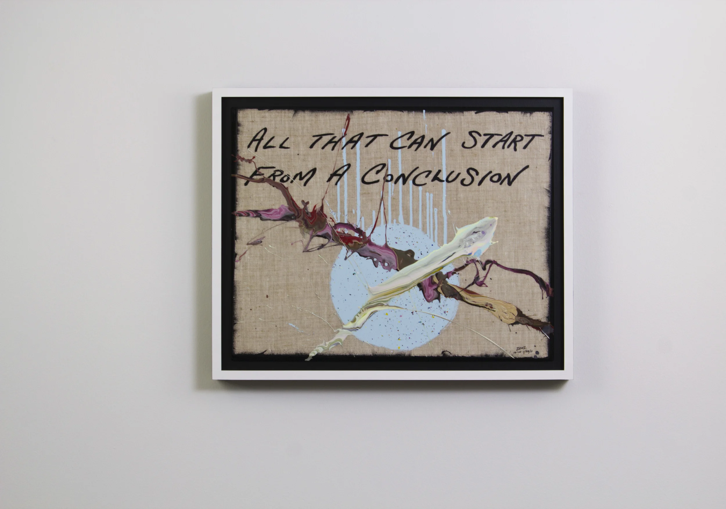 In each panel, controlled gesture meets intentional unpredictability through the artist’s signature technique, F.O.L.P. (Figure of Limited Predictability). These acts of release—where paint is allowed to stretch, separate, collide, and behave according to its own internal physics—anchor the series in a lineage of material-driven abstraction. F.O.L.P. functions as a conceptual engine: part discipline, part surrender. The work holds a structural spine beneath it, yet allows the medium to assert itself in ways that cannot be fully predetermined. What remains is a sequence that reads simultaneously as narrative and non-narrative, personal and anonymous, structured and impulsive. The result is a meditation on the way lives unfold—not in clean chapters, but in overlapping motions, fading words, accumulating color, and unplanned gestures that ultimately connect one moment to the next.