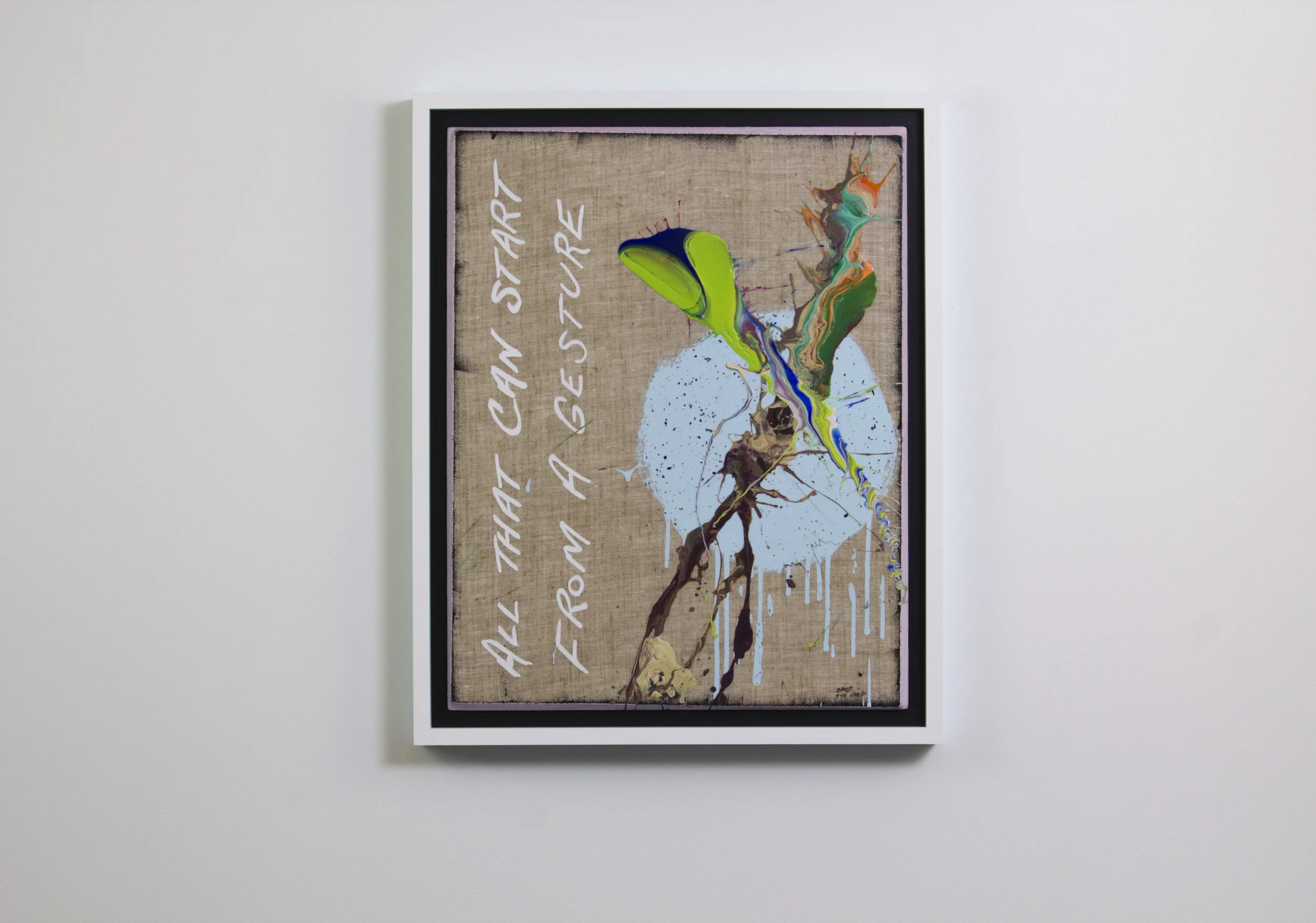 "All that can start from a gesture" (white lettering).