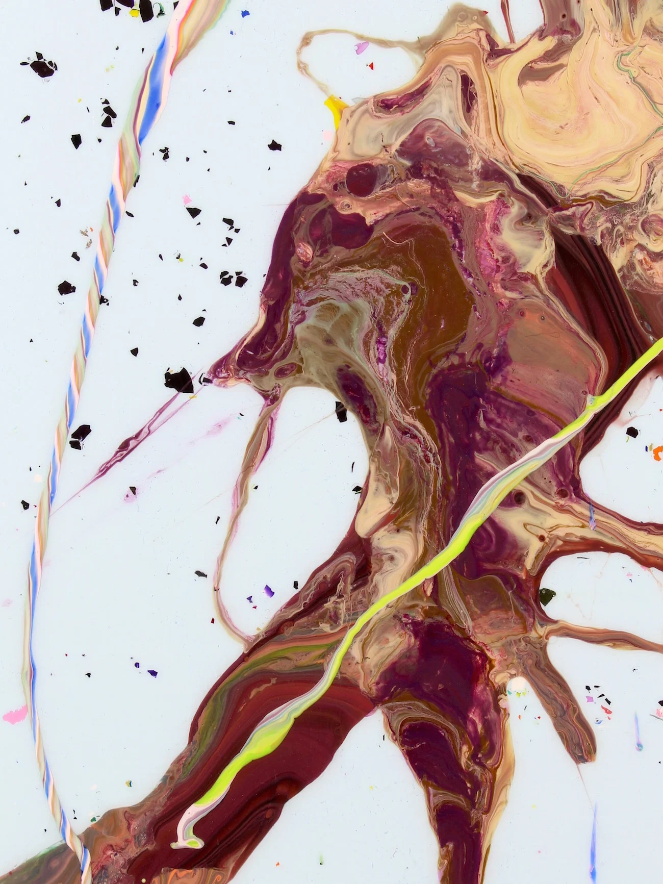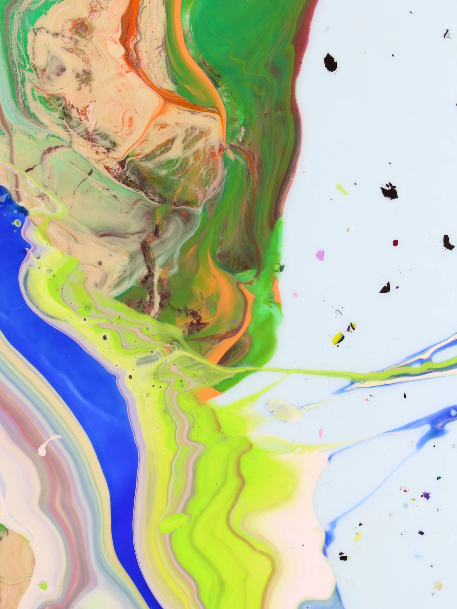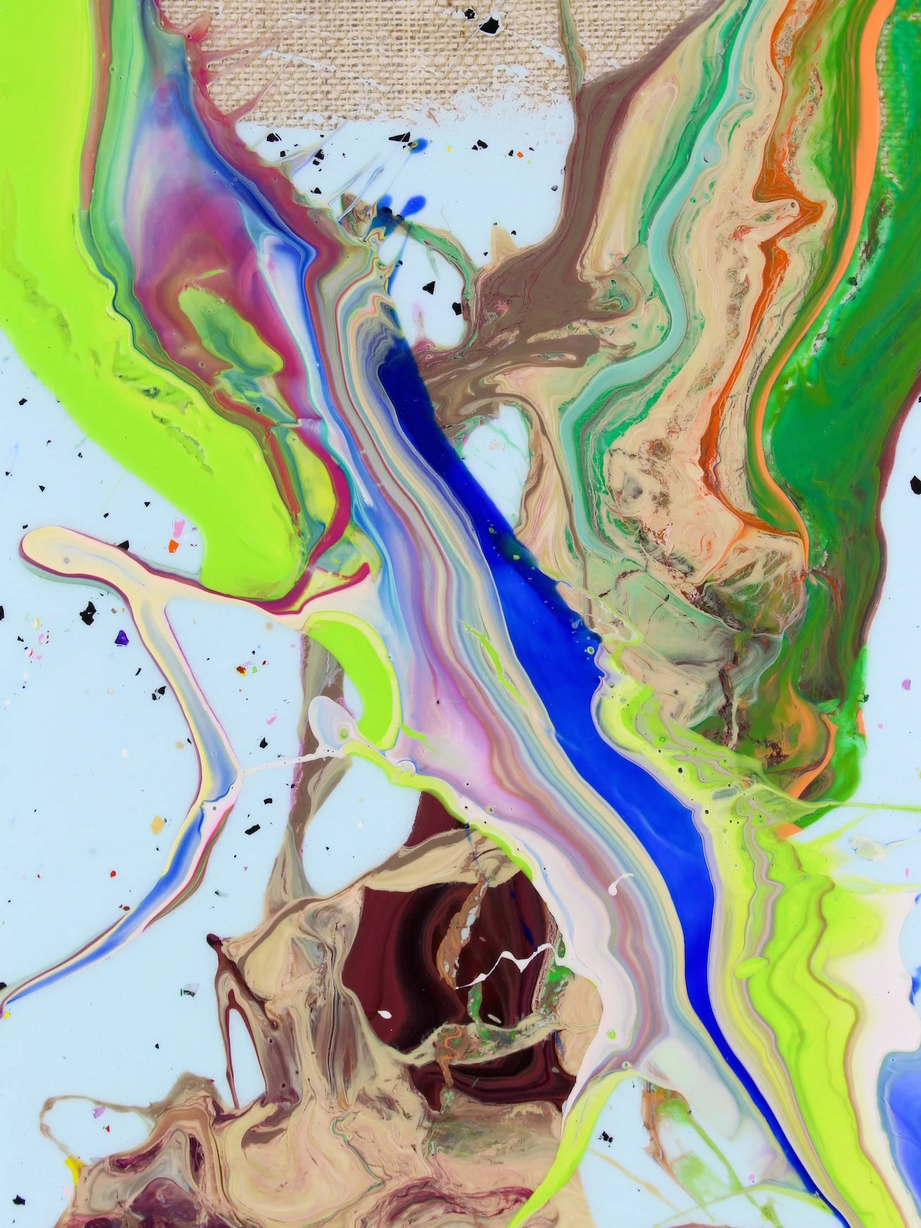 In each panel, controlled gesture meets intentional unpredictability through the artist’s signature technique, F.O.L.P. (Figure of Limited Predictability). These acts of release—where paint is allowed to stretch, separate, collide, and behave according to its own internal physics—anchor the series in a lineage of material-driven abstraction. F.O.L.P. functions as a conceptual engine: part discipline, part surrender. The work holds a structural spine beneath it, yet allows the medium to assert itself in ways that cannot be fully predetermined. What remains is a sequence that reads simultaneously as narrative and non-narrative, personal and anonymous, structured and impulsive. The result is a meditation on the way lives unfold—not in clean chapters, but in overlapping motions, fading words, accumulating color, and unplanned gestures that ultimately connect one moment to the next.