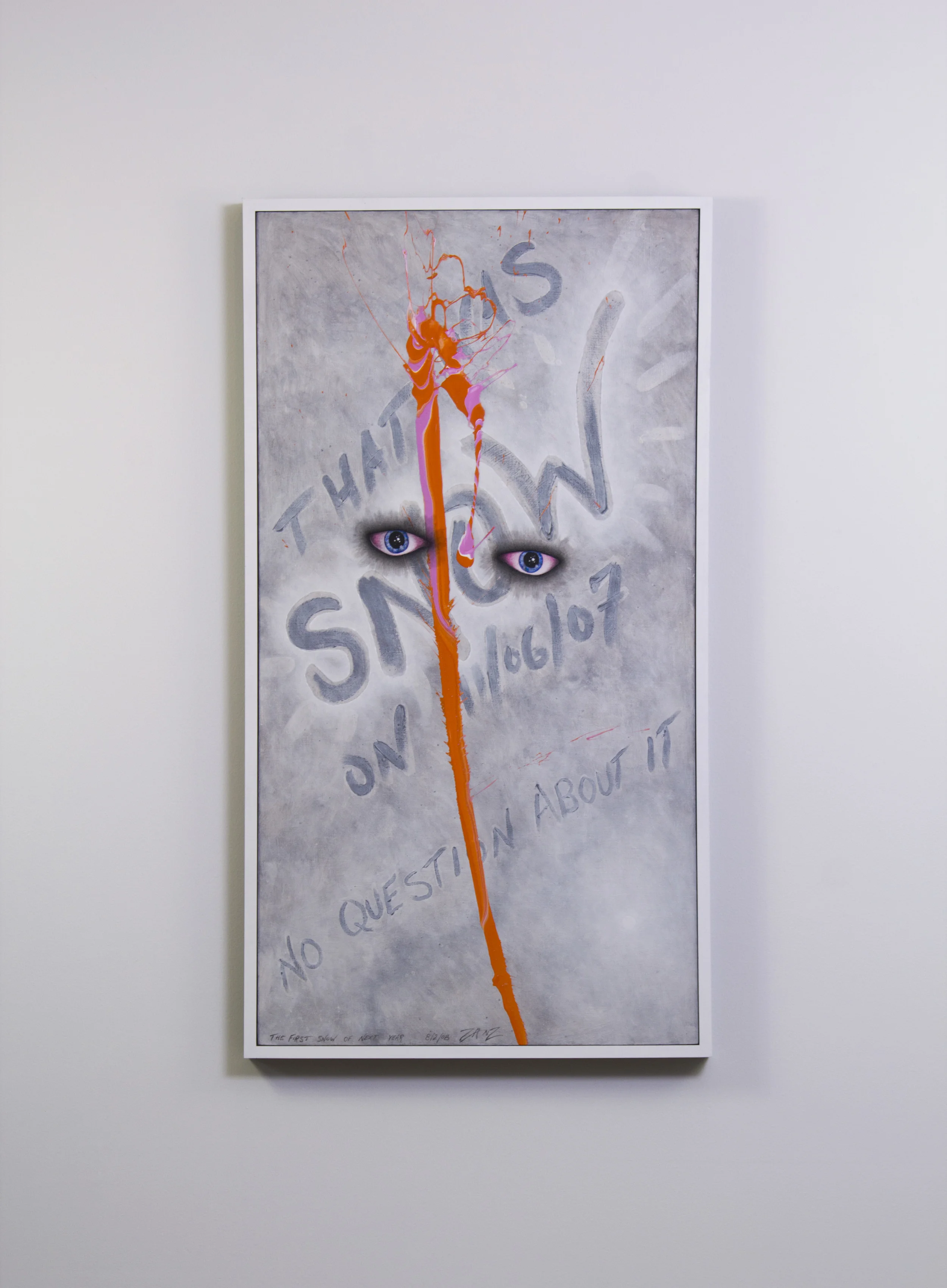 This series introduces painted eyes and early F.O.L.P. (Figure of Limited Predictability) gestures as points of awareness within each painting. Text, perception, and physical paint coexist on the surface, allowing images to emerge through a balance of intention and unpredictability rather than design.