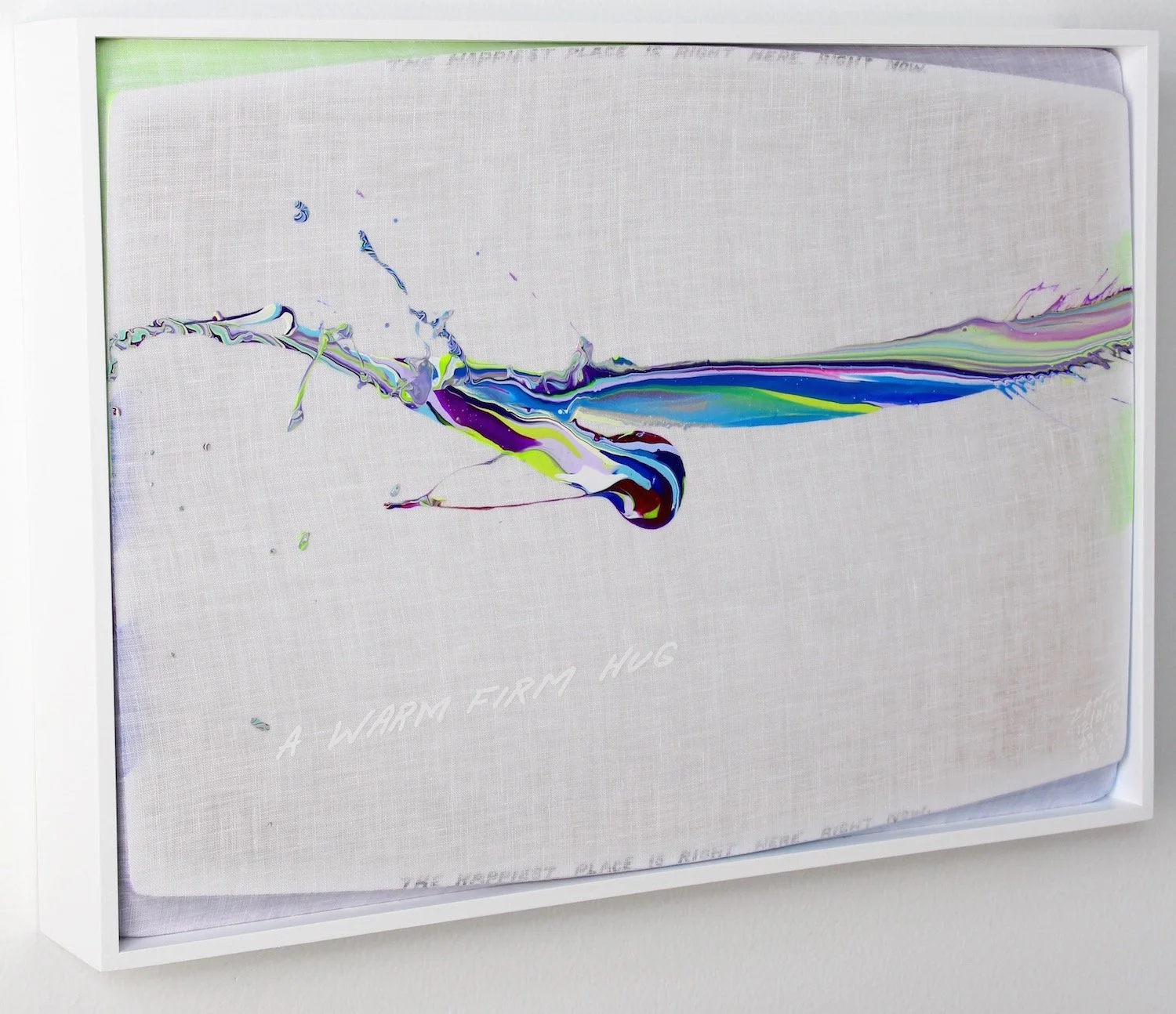 Every piece contains a unique F.O.L.P. (Figure Of Limited Predictability) — a controlled release of hand-mixed pigment from a shaped Color Wand. The paint spreads into an organic form shaped by viscosity, color order, and the physics of impact — a balance between intention and unpredictability.