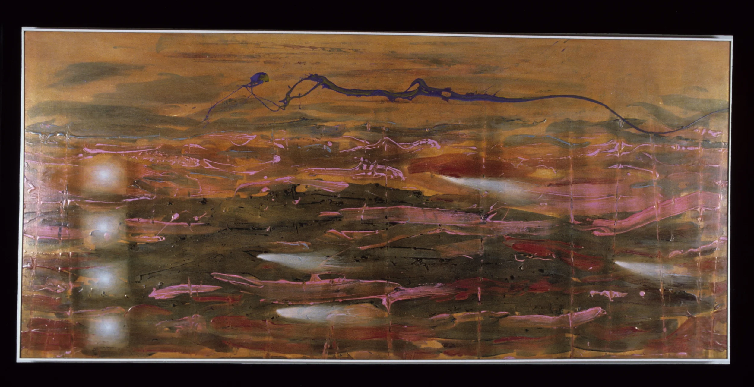 acrylic, enamel, mica, polyurethane, & msa varnish on canvas framed