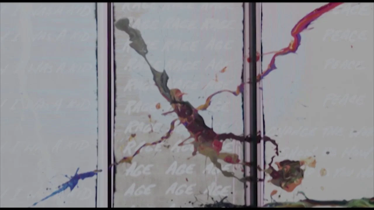 Stages of life; childhood, midlife, old age, and death. The looping film integrated into the upper right corner reveals insights into the paintings and charcoal drawing.