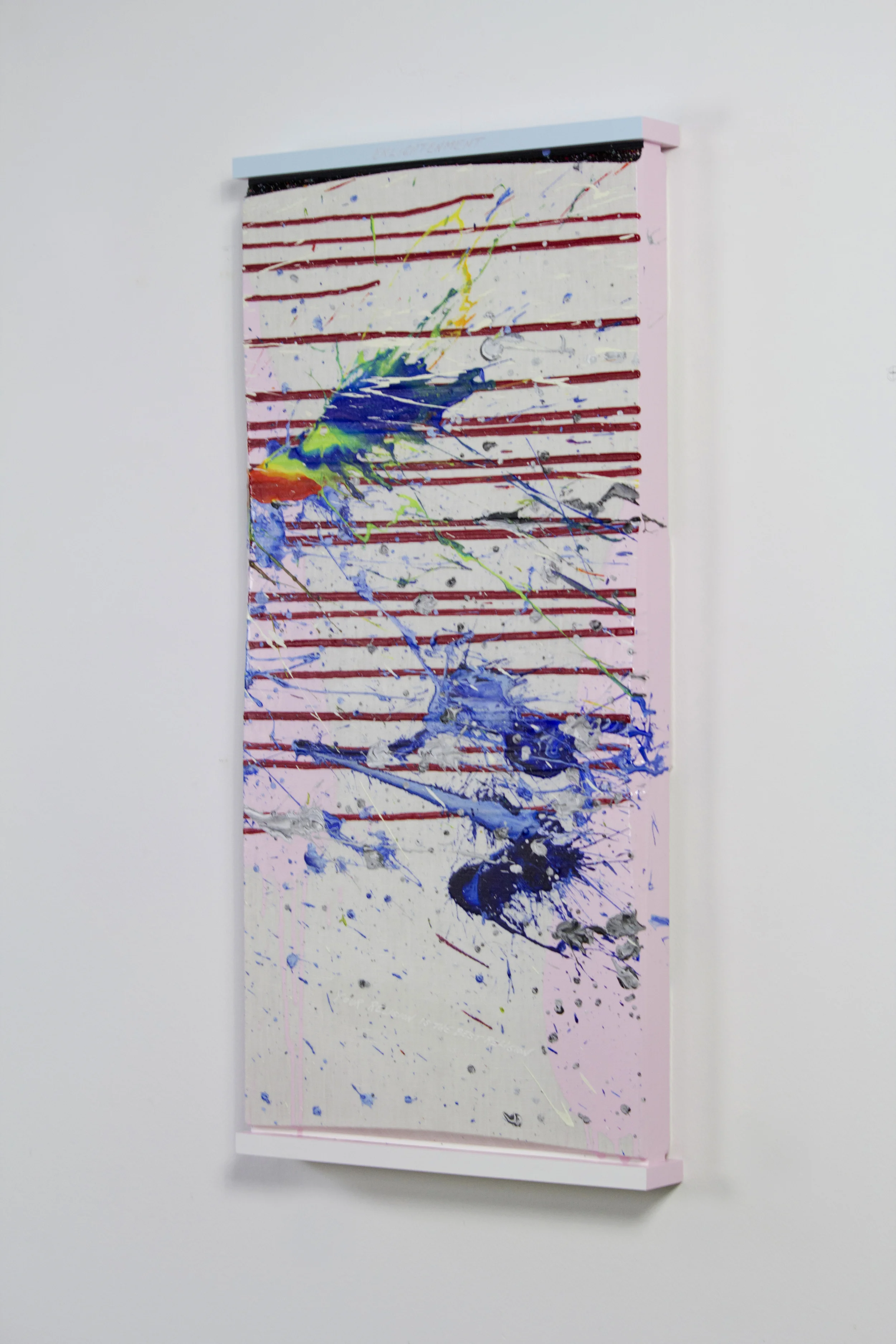 The painting explores humanity’s impulse toward absolute conviction—how belief can unify, divide, elevate, and distort. Across seven vertically hung panels, a single explosive gesture crosses boundaries of doctrine, identity, and personal certainty, revealing the fragile architecture behind every claim to truth.