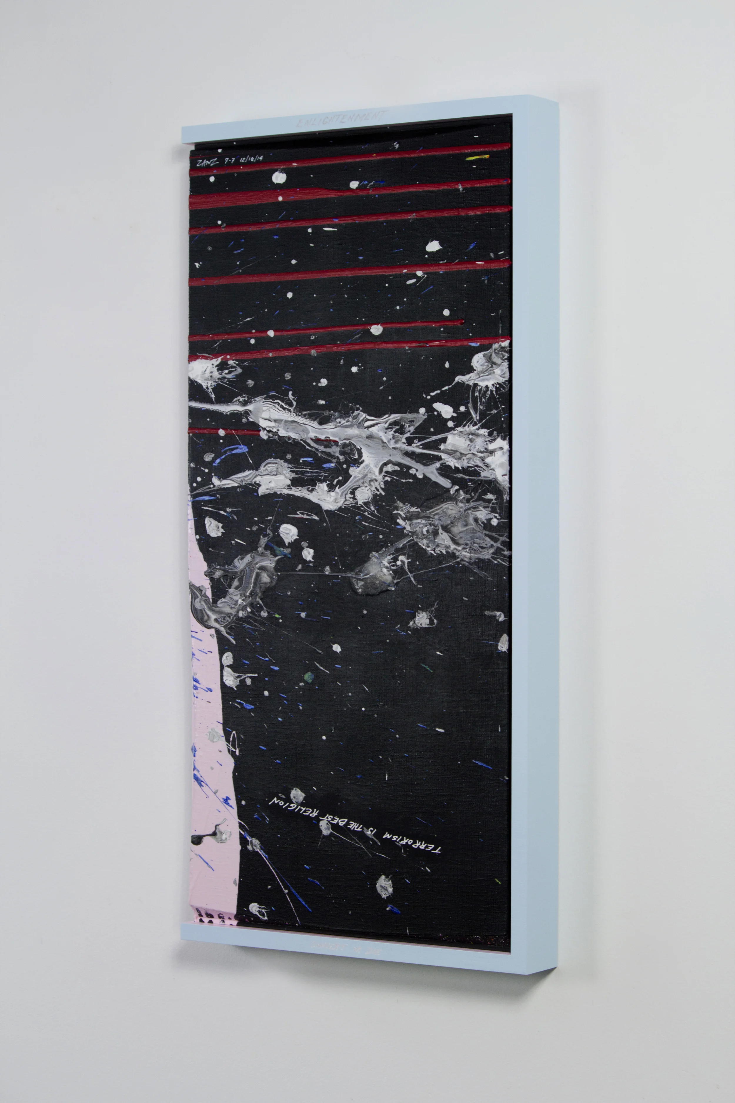 The painting explores humanity’s impulse toward absolute conviction—how belief can unify, divide, elevate, and distort. Across seven vertically hung panels, a single explosive gesture crosses boundaries of doctrine, identity, and personal certainty, revealing the fragile architecture behind every claim to truth.